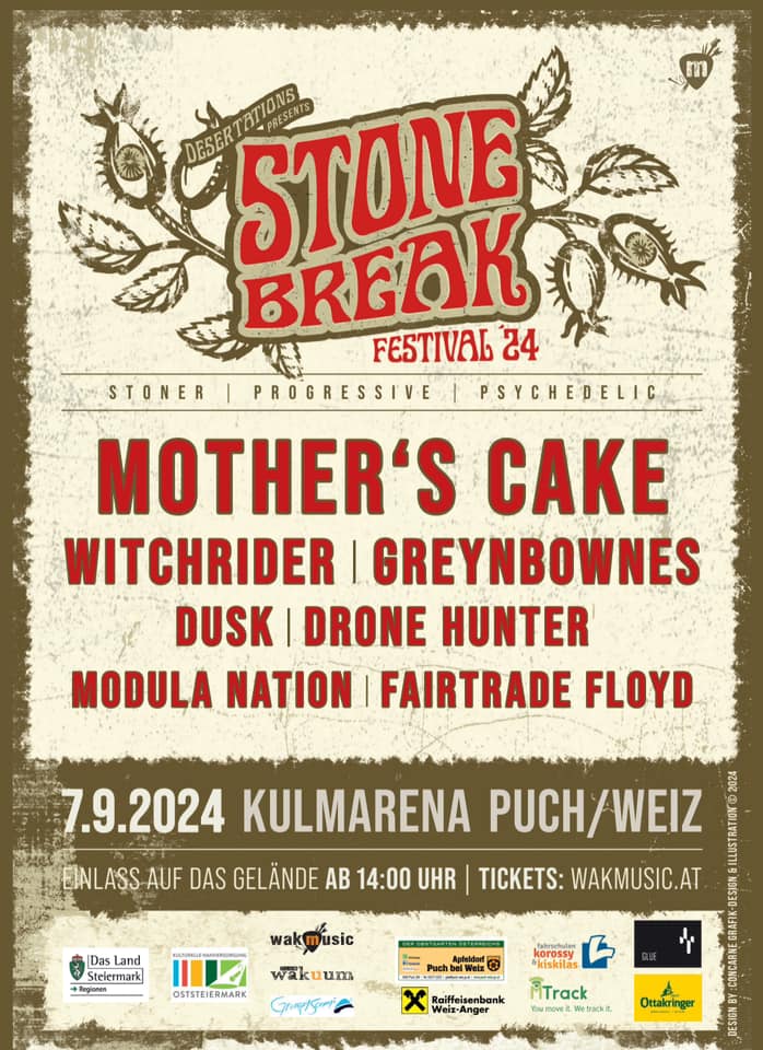 Zum Sechsten Mal findet heuer am 07.09.2023 das Stonebreak-Festival in der Kulmarena (Puch bei Weiz) statt! Das Festival steht ganz im Zeichen des Stonerrocks, welcher durch Progressive Rock, Heavy Rock und 70er Rock ergänzt wird und dadurch einer besonders ausgeprägte Form des Rock Genres zuzuordnen ist. Bands: Mother’s Cake, Witchrider, Woodstock Barbie, Greynbownes, Dusk, Drone […]